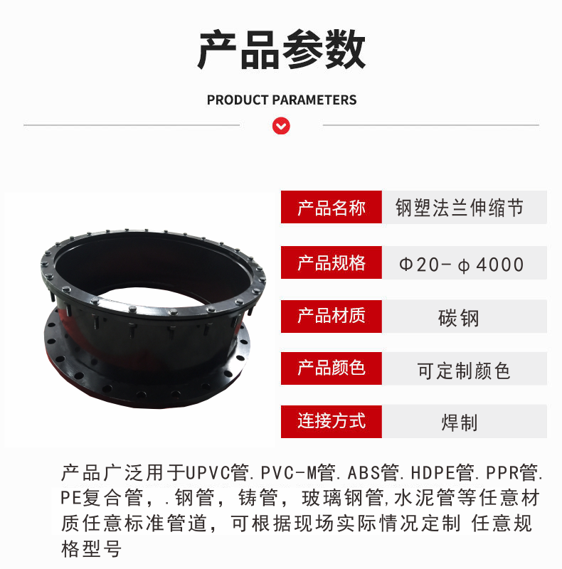 6. 可定制雙法蘭短管,可任意定制異徑伸縮節