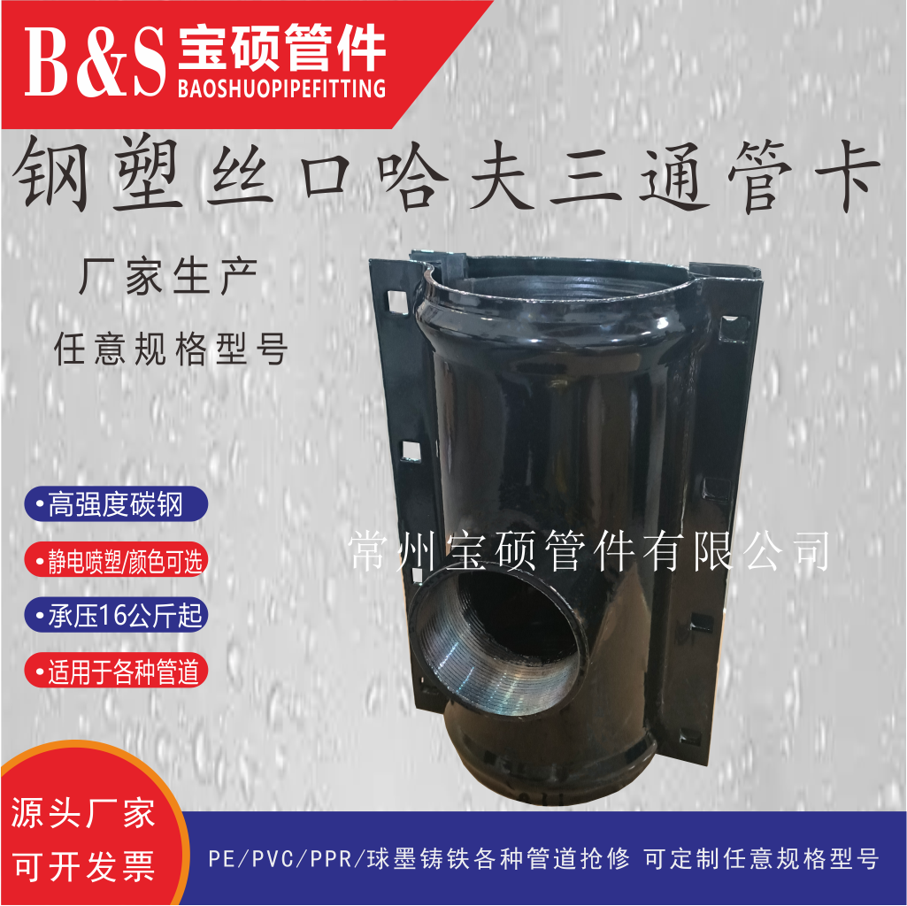 - 三通管道的連接:鋼塑絲口哈夫三通管卡可以用于連接和固定三通管道,實現管道分支的功能。